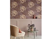 Vliesové tapety s kvalitním papírovém povrchem - matný vínové podklad, metalické béžové rozkvetlé větvičky třešní.
