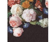 Jako z pláten starých mistrů. Pestré květiny na černém vliesovém podkladu.