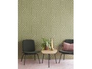 Zelená vliesové tapety na zeď, geometrický vzor v retro stylu - efektní střídání lesku a matu.