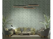 Luxusní pololesklá geometrické vliesové tapety s vinylovém povrchem, odstíny zelené a kovově zlaté.
