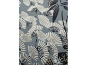 Luxusní pololesklá tmavě zelená vliesové tapety s vinylovém povrchem, plastické motivy palmovéch listů, odstíny šedo-černé a zlaté.