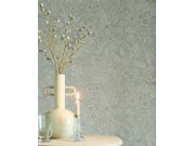 Jemně plastické zelená vliesové tapety s vinylovém povrchem, motivy květin, látkové textura. Foto interiéru je pouze ilustrační - odlišné barvy.