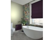 Zelená vliesové tapety na zeď, květinové vzor v zelené, fialové, tyrkysové a hnědé.