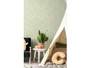 Mentolově zelená vliesové tapety na zeď, vzor bílé hvězdičky.