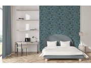 Jemně plastické zelená vliesové tapety s vinylovém povrchem, motivy květin, látkové textura. Foto interiéru je pouze ilustrační - odlišné barvy.