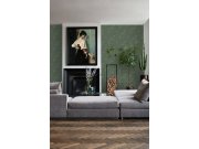 Jemně strukturované vliesové tapety na zeď, odstíny šedé a zelené, na listech metalické linie. Foto interiéru je pouze ilustrační - odlišné barvy.