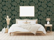Plastické vliesové tapety na zeď, zelený podklad, listy béžové a zlaté.