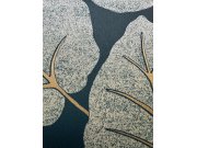 Zeleno-modrá vliesové tapety s výrazným plastickým vzorem a zlatými obrysů listů.