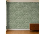 Luxusní zelená vliesové tapety s vinylovém povrchem, hrubší proužkové textura, motiv palem.