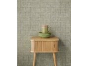 Šedozelená vliesové tapety na zeď, imitace čtvercového dřevěného obložení.