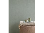 Vliesové tapety s vinylovém povrchem, imitace hrubší tkaniny, melanž v odstínech zelené. Foto interiéru je pouze ilustrační - odlišné barvy.