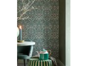 Strukturované zelená vliesové tapety na zeď, zámecký květinové vzor.