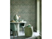 Zelená vliesové tapety na zeď, květiny v odstínech hnědé a béžové.