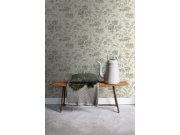 Zeleno-bílá vliesové tapety na zeď, motivy květin, rostlin a ptáčků.