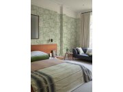 Zelená vliesové tapety s vinylovém povrchem, plastické čáry tvoří efektní vzorek. Foto interiéru je pouze ilustrační - odlišné barvy.