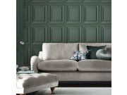 Šedozelená vliesové tapety na zeď, imitace čtvercového dřevěného obložení.