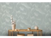 Zeleno-modrá vliesové tapety s výrazným plastickým vzorem a zlatými obrysů listů.