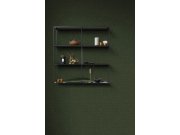 Hladká zelená vliesové tapety na zeď, větvičky, květiny a ptáčci, místy pololesklé zlaté detaily.