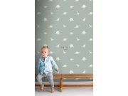 Mentolově zelená vliesové tapety na zeď, bílé putníky.