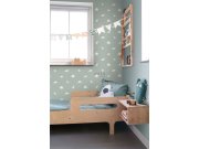 Mentolově zelená vliesové tapety na zeď, vzor bílé hvězdičky.