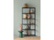 Luxusní vliesové tapety na zeď s geometrickým vzorem ve světle zelených odstínech s perlovém leskem.