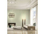 Luxusní zelená vliesové tapety s vinylovém povrchem, hrubší proužkové textura, motiv palem.