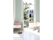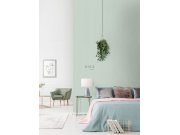 Mentolově zelená vliesové tapety na zeď, bílé putníky.