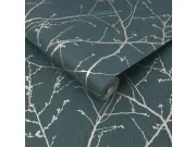 Zelená plastické vliesové tapety na zeď, látkové textura, hladké metalické větvičky, světlé zlato.