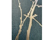 Zeleno-modrá vliesové tapety s výrazným plastickým vzorem a zlatými obrysů listů.
