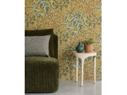 Zelená vliesové tapety na zeď, květiny v odstínech hnědé a béžové.