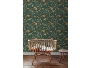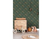Zelená vliesové tapety na zeď, motivy lesních zvířátek a rostlin. Foto interiéru je pouze ilustrační - odlišné barvy.