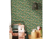 Zelená vliesové tapety na zeď, motivy lesních zvířátek a rostlin. Foto interiéru je pouze ilustrační - odlišné barvy.