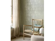 Zelená vliesové tapety evokující látkovou texturu, stříbrný plastický elegantní vzorek připomínající větvičky.