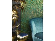 Zeleno-zlatá tapeta s listy palmy MN2014