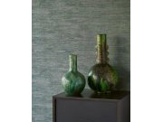 Luxusní tapety s vinylovém povrchem, imitace hrubé látky, odstíny zelené, béžové a tyrkysové, látkové textura. Foto interiéru je pouze ilustrační - odlišné barvy. Co vás zaujme: vysoká odolnost a omyvatelnost, kvalita zpracovéní. Design: nadčasové, rustik
