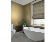 Pololesklá strukturované vliesové tapety s vinylovém povrchem, hrubší látkové textura v odstínech hnědé, béžové a zlaté.