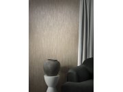 Pololesklá strukturované vliesové tapety s vinylovém povrchem, hrubší látkové textura v odstínech hnědé, béžové a zlaté.